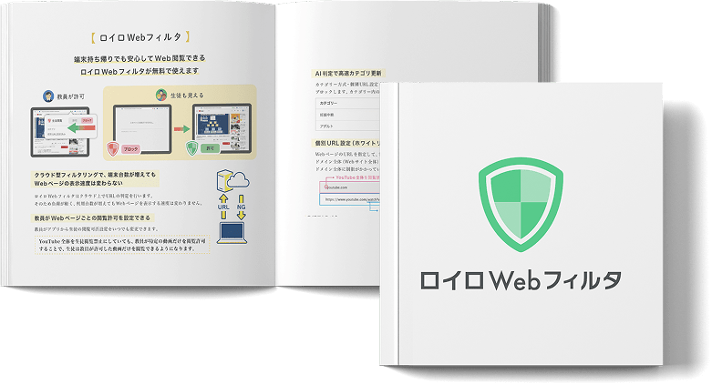ロイロWebフィルタは、授業中のWeb利用を安心・安全に行えるクラウド型AIフィルタリングサービスです。
